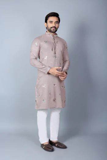 FABRIC : COTTONSKU: 81979-4 - TRENDING RAYON SILK EMBROIDERY SEQUENCE WORK MEN’S KURTA PAYJAMA GREY ₹858.00