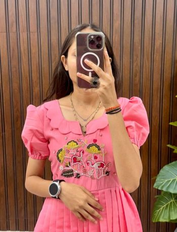 SHAPE :- BODYCON DRESSSKU: 76582-3 - LATEST COTTON SILK HANDWORK ONE PIECE DRESS PINK ₹1,109.00