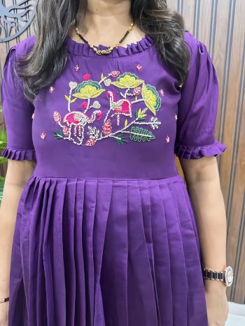 LINING : MICRO COTTON (FULL UP TO BOTTOM AND FRONT BACK)SKU: 78041-4 - ATTRACTIVE COTTON SILK HANDWORK ONE PEICE DRESS PURPLE ₹1,109.00