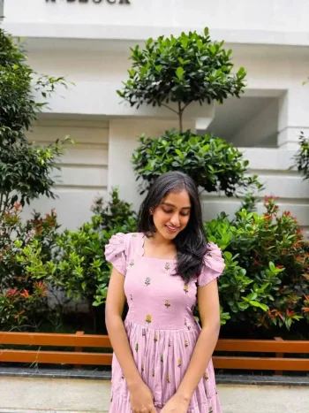 (FULL STITCHED)SKU: 79191-2 - RICH LOOK SOFT COTTON THREAD EMBROIDERY WORK ONE PIECE DRESS LAVENDER ₹1,041.00