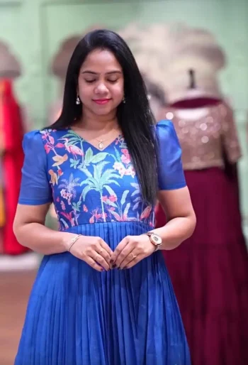 (FULL-STITCH)SKU: 79863-2 - MODERN GEORGETTE FLORAL PRINTED WORK ONE PIECE DRESS BLUE ₹856.00