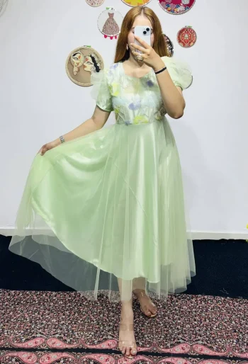 XL UP TO XXLSKU: 79179-5 - RICH LOOK SATIN BEADS AND NET WORK ONE PIECE DRESS MINT ₹1,041.00