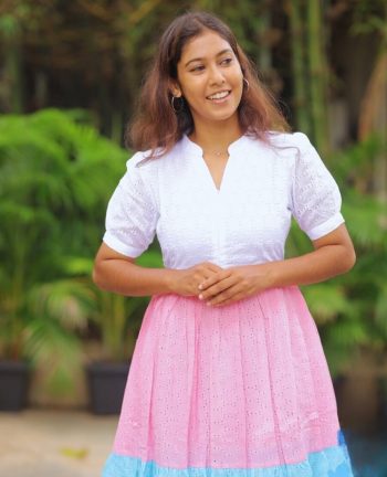 LENGTH : 46+ INCHSKU: 78100-3 - MODERN FOOTBALL COTTON TWO TONE SHADE WORK ONE PEICE DRESS PINK ₹693.00