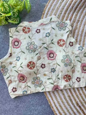 OPEN :- BACK SIDE OPENSKU: 77639-2 - FASHIONABLE RAYON THREAD SEQUENCE WORK READY TO WEAR STITCHED BLOUSE WHITE ₹499.00