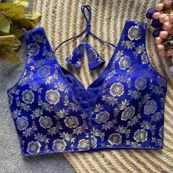 - FANCY DOLA SILK PADDED BACK OPEN STYLE STITCHED BLOUSE BLUE ₹499.00