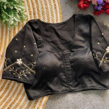 HEIGHT :-14.5+ INCHSKU: 77830-6 - RICH LOOK MALAI SATIN HAND WORK STITCHED BLOUSE BLACK ₹763.00