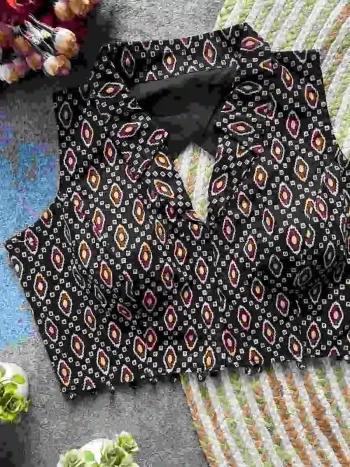 OPEN :- BACK SIDE OPENSKU: 77641-1 - FANCY PURE COTTON AJRAKH PRINT WORK STITCHED BLOUSE BLACK ₹499.00