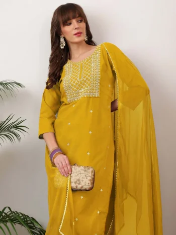 LENGTH : 2.25 METERSKU: 82703-5 - NEW ARRIVAL VISCOSE CHANDERI SEQUENCE EMBROIDERY WORK TOP BOTTOM WITH DUPATTA YELLOW ₹1,112.00