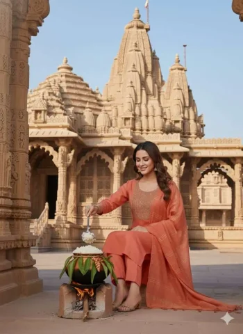 SIZE : S-M-L-XL-XXL-3XLSKU: 75907-5 - FANCY SLUB COTTON EMBROIDERY WORK TOP BOTTOM WITH DUPATTA PEACH ₹786.00