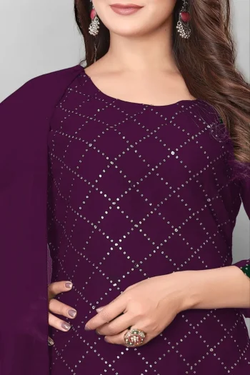 LENGTH : 2.10 METERSKU: 81514-2 - FANCY CHINON EMBROIDERY WITH THREAD AND SEQUENCE WORK TOP PALAZZO WITH DUPATTA PURPLE ₹1,388.00