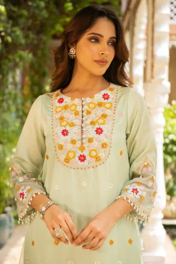 LENGTH : 2.2 METERSKU: 80759-2 - DESIGNER CHINON MULTICOLOR EMBROIDERY SEQUENCE WORK TOP PALAZZO WITH FANCY DUPATTA PARROT GREEN ₹1,527.00