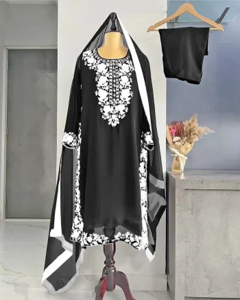 DUPATTA LENGTH : 2.20 METERSKU: 75324-3 - DESIGNER GEORGETTE EMBROIDERY WORK TOP PALAZZO WITH DUPATTA WHITE AND BLACK ₹1,388.00