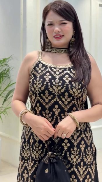 DUPATTA :- 2.1 METERSKU: 76837-2 - DESIGNER SEQUENCE AND ZARI EMBROIDERY WITH PEARL AND DIAMOND HANDWORK TOP PALAZZO WITH DUPATTA BLACK ₹1,944.00