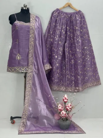 WORK : HEAVY EMBROIDERY CODING SEQUENCE WORKSKU: 79712 - DESIGNER JIMMY CHOO ORGANZA EMBROIDERY SEQUENCE WORK TOP PALAZZO WITH DUPATTA LAVENDER ₹1,666.00