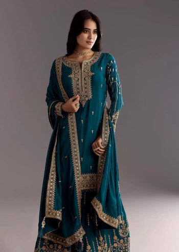 DUPATTA SIZE : 2.10-2.20 METERSKU: 67567 - FANCY VELVET SEQUENCE EMBROIDERY WORK TOP PALAZZO WITH DUPATTA BLUE ₹1,571.00