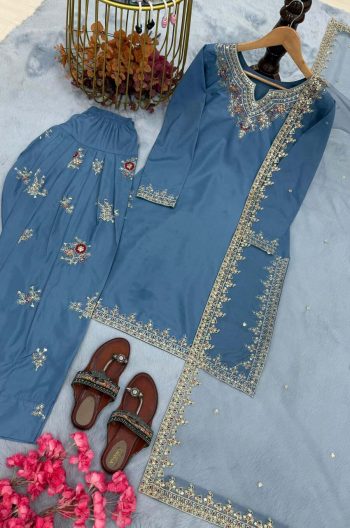 PACKAGE CONTAIN : TOP, PATIYALA AND DUPATTASKU: 81766 - MODERN CREPE EMBROIDERY SEQUENCE WORK TOP PATIYALA WITH DUPATTA BLUE ₹1,459.00