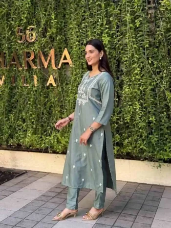 SIZE : S-36, M-38, L-40, XL-42, XXL-44SKU: 80810-2 - ATTRACTIVE RAYON EMBROIDERY SEQUENCE WORK KURTI PANT GREEN ₹625.00