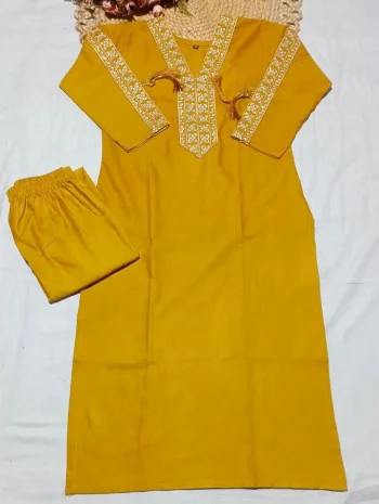 SIZE :- M L XL XXL 3XLSKU: 72575-2 - NEW ARRIVAL SLUB COTTON EMBROIDERY WORK TOP PENT SET YELLOW ₹715.00