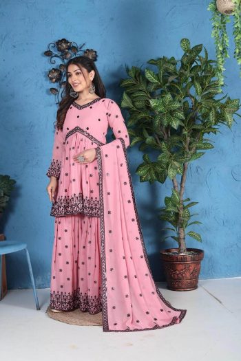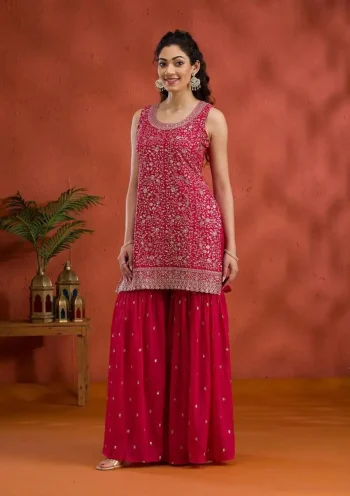 LENGTH : 2.10 METERSKU: 81393 - RICH LOOK GEORGETTE EMBROIDERY SEQUENCE WORK TOP SHARARA WITH DUPATTA PINK ₹1,459.00