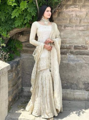 - ATTRACTIVE CHINON SILK EMBROIDERY SEQUENCE WORK TOP SHARARA WITH DUPATTA OFF WHITE ₹1,428.00