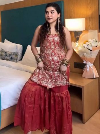 FABRIC : PURE CHINON SILK WITH EMBROIDERY 5MM SEQUENCE WORK WITH FULL-STITCHSKU: 76905-1 - RICH LOOK SHIMMER SILK SEQUENCE WITH THREAD WORK TOP SHARARA WITH DUPATTA RED ₹1,736.00