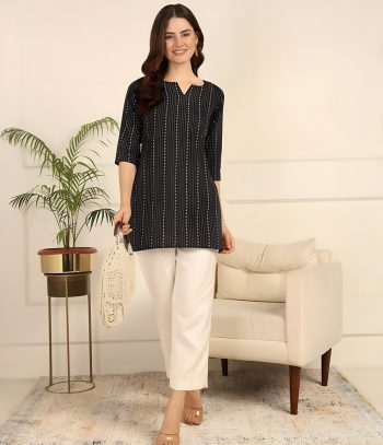 SIZE : L (40), XL(42), XXL(44)SKU: 71388-2 - MODERN COTTON PRINTED WORK TOP BLACK ₹249.00