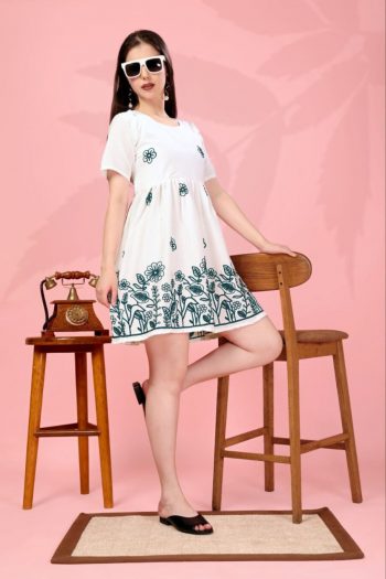 IN PACKAGE : FULLY STITCHED SHORT KURTISKU: 81875-4 - TRENDING COTTON PRINTED EMBROIDERY WORK ONLY SHORT KURTI PISTA ₹556.00