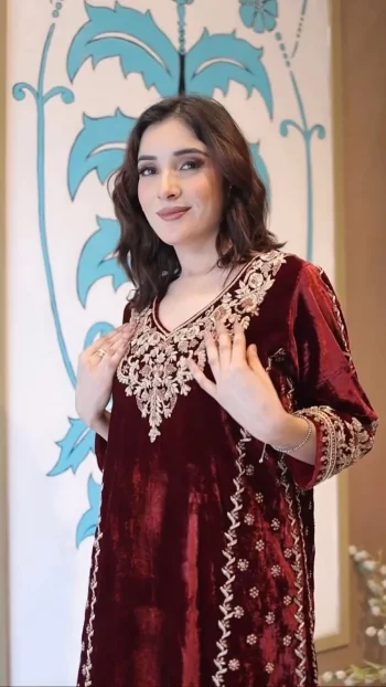 SIZE : 2.2 METERSKU: 81472-3 - DESIGNER VISCOSE VELVET EMBROIDERY SEQUENCE WORK TOP BOTTOM WITH DUPATTA MAROON ₹1,319.00