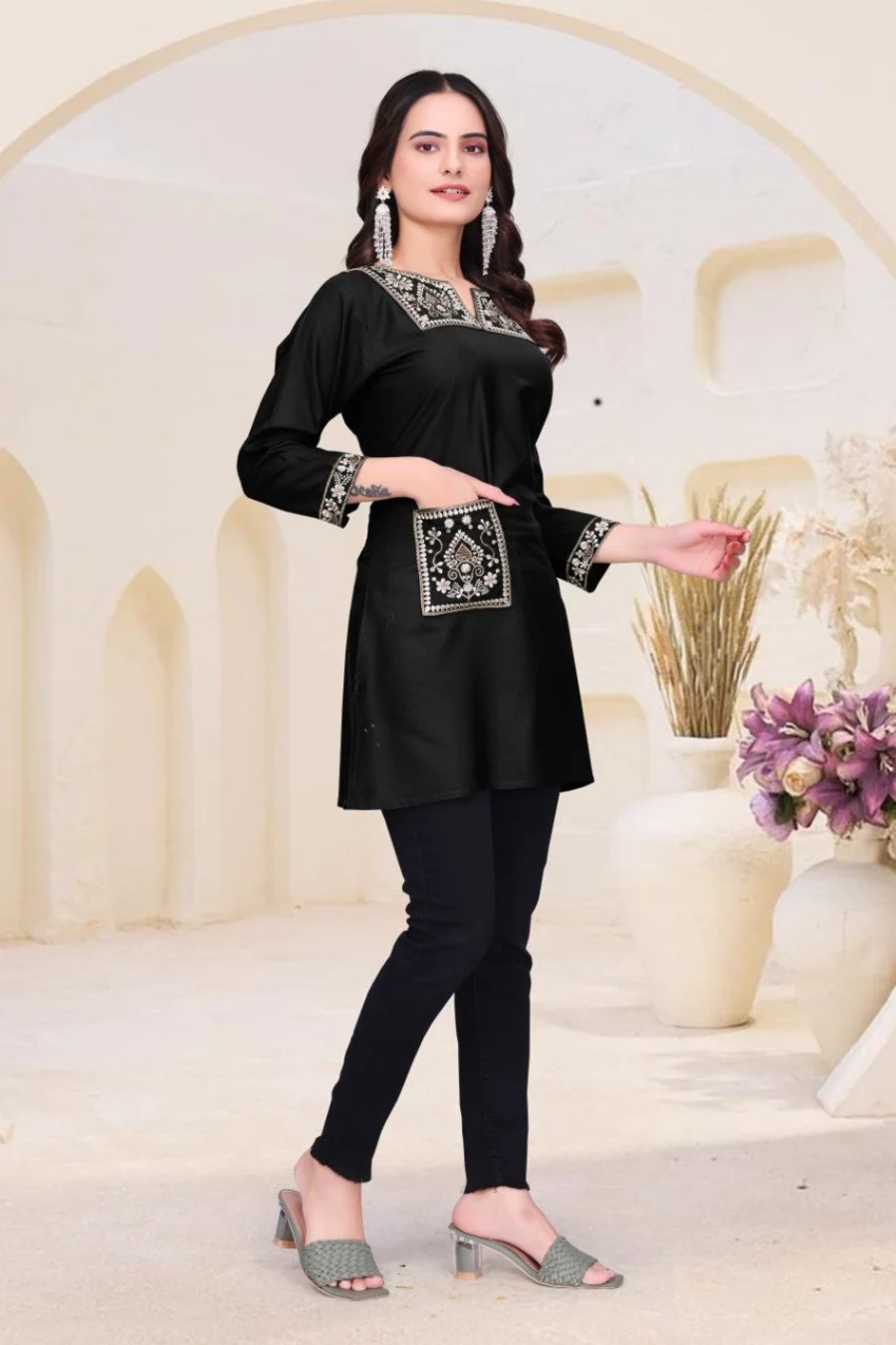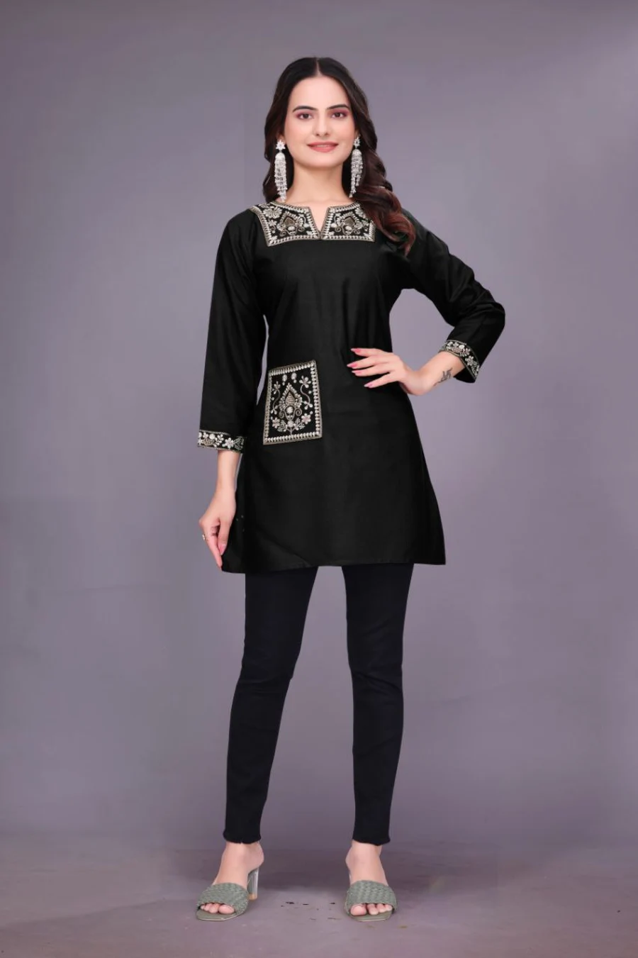 31FANCY RAYON EMBROIDERY WORK SHORT KURTI BLACK