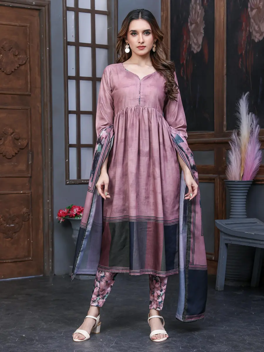 7FANCY COTTON BLEND DIGITAL PRINTED WORK TOP BOTTOM WITH DUPATTA LAVENDER