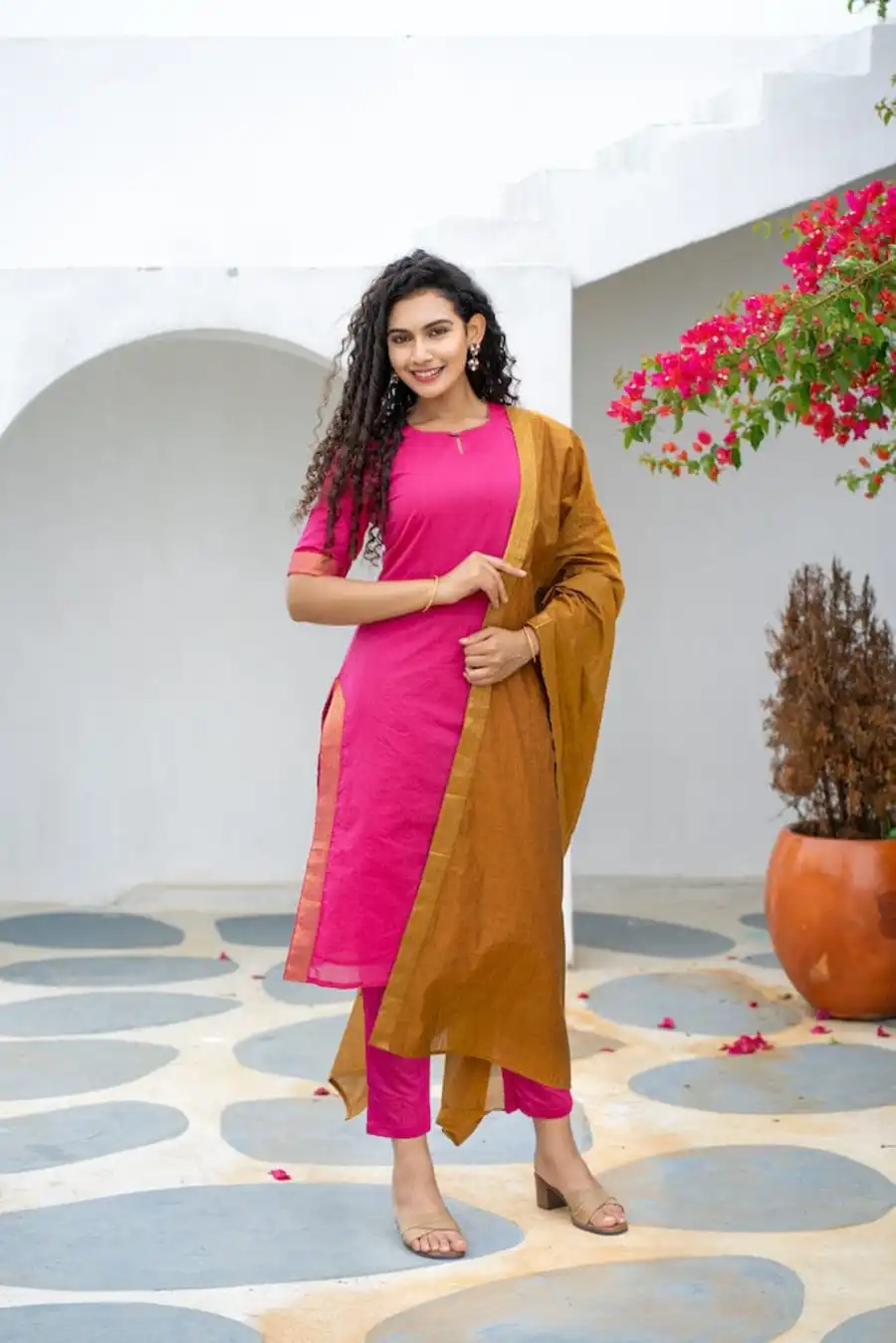 ATTRACTIVE CHANDERI SILK BANARASI LACE WORK TOP BOTTOM WITH DUPATTA SET PINK