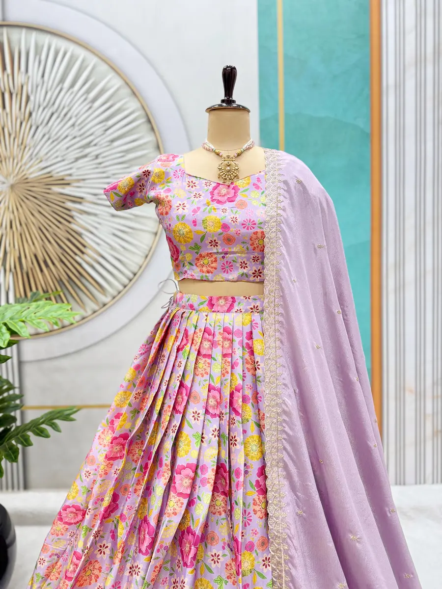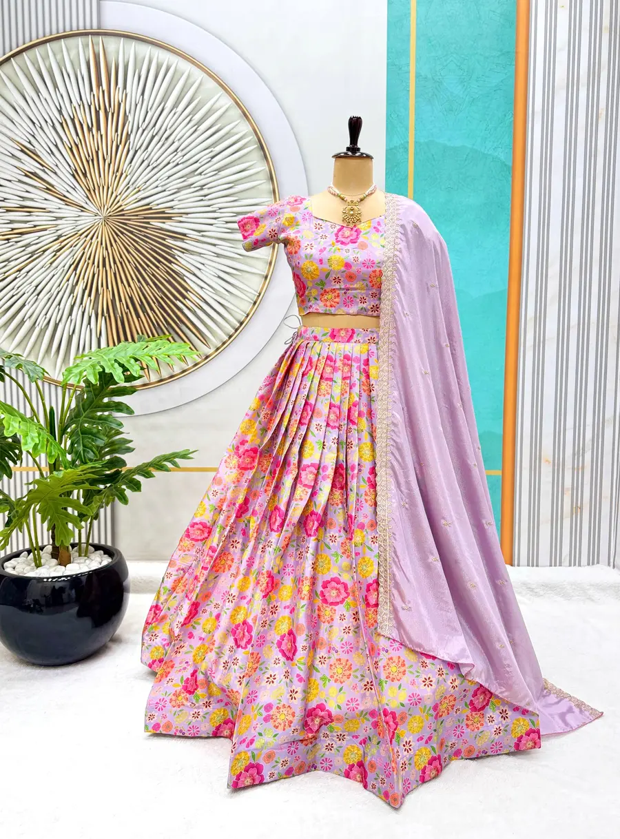 ATTRACTIVE CHINON SILK PRINTED EMBROIDERY WORK LEHENGA CHOLI WITH DUPATTA BABY PINK