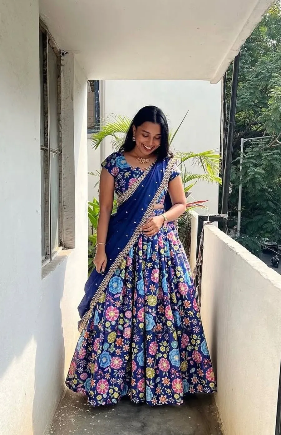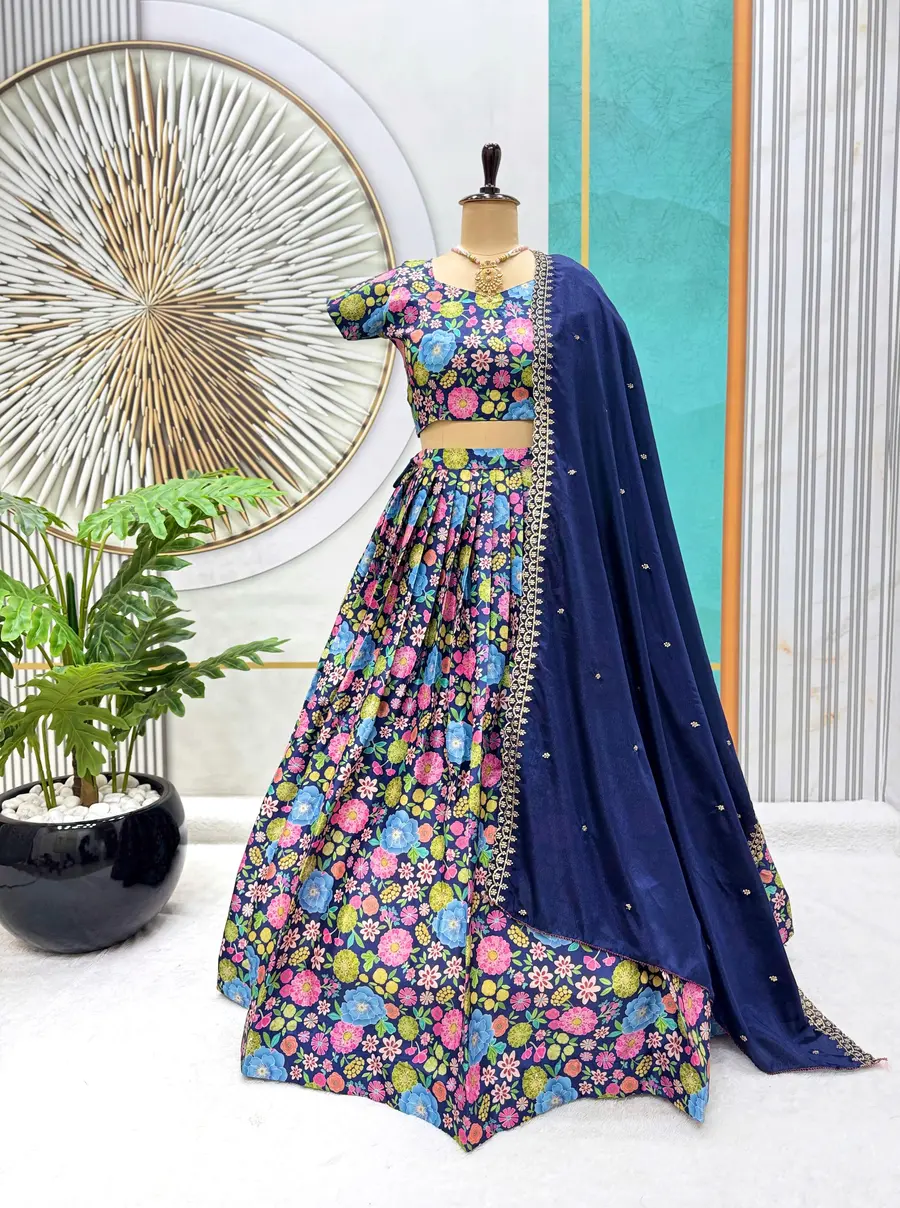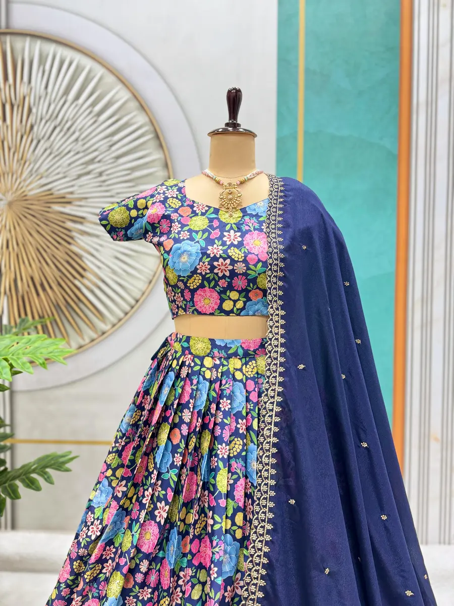 ATTRACTIVE CHINON SILK PRINTED EMBROIDERY WORK LEHENGA CHOLI WITH DUPATTA BLUE