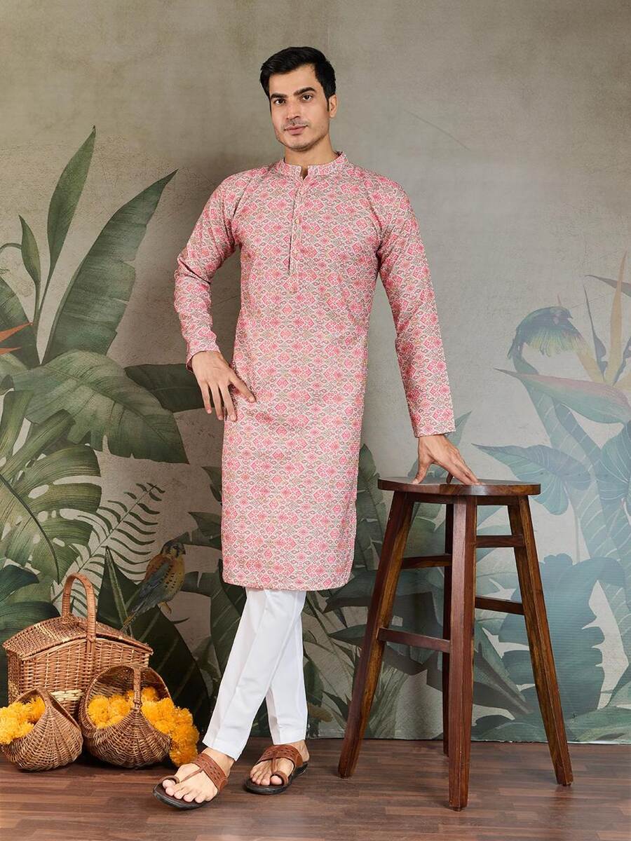 ATTRACTIVE COTTON SCHIFFLI CROCHET SEQUENCE WORK WITH DIGITAL PRINT MEN’S KURTA BABY PINK