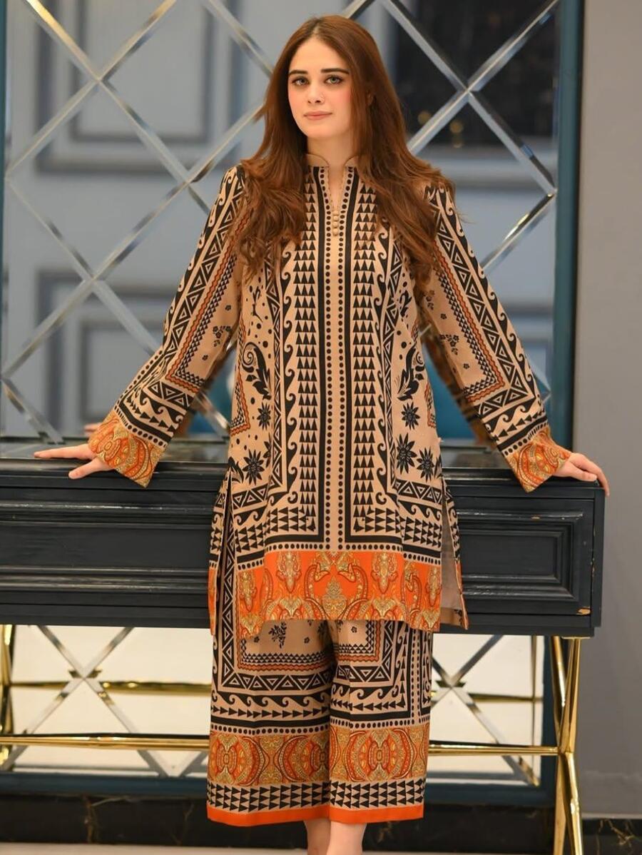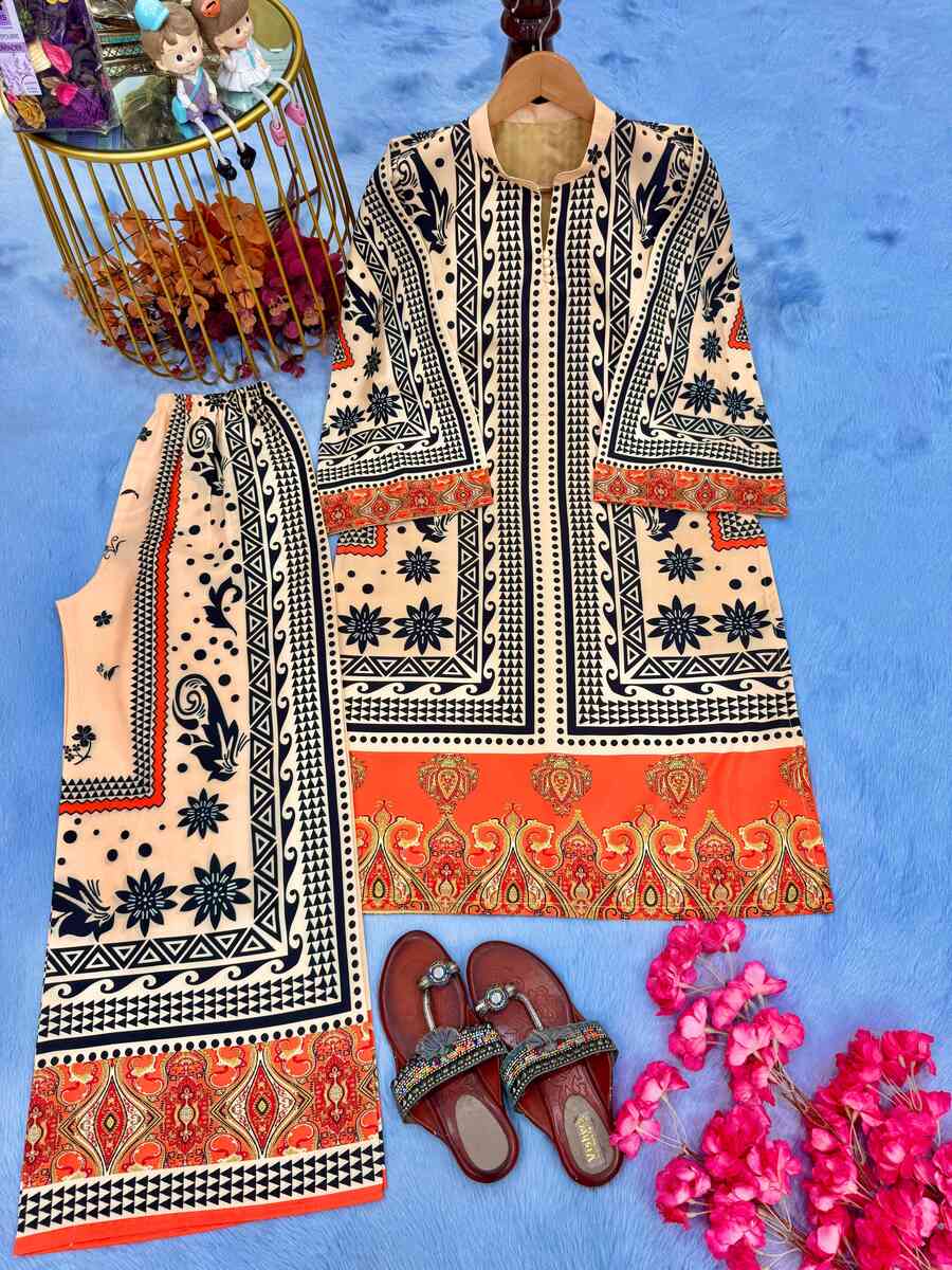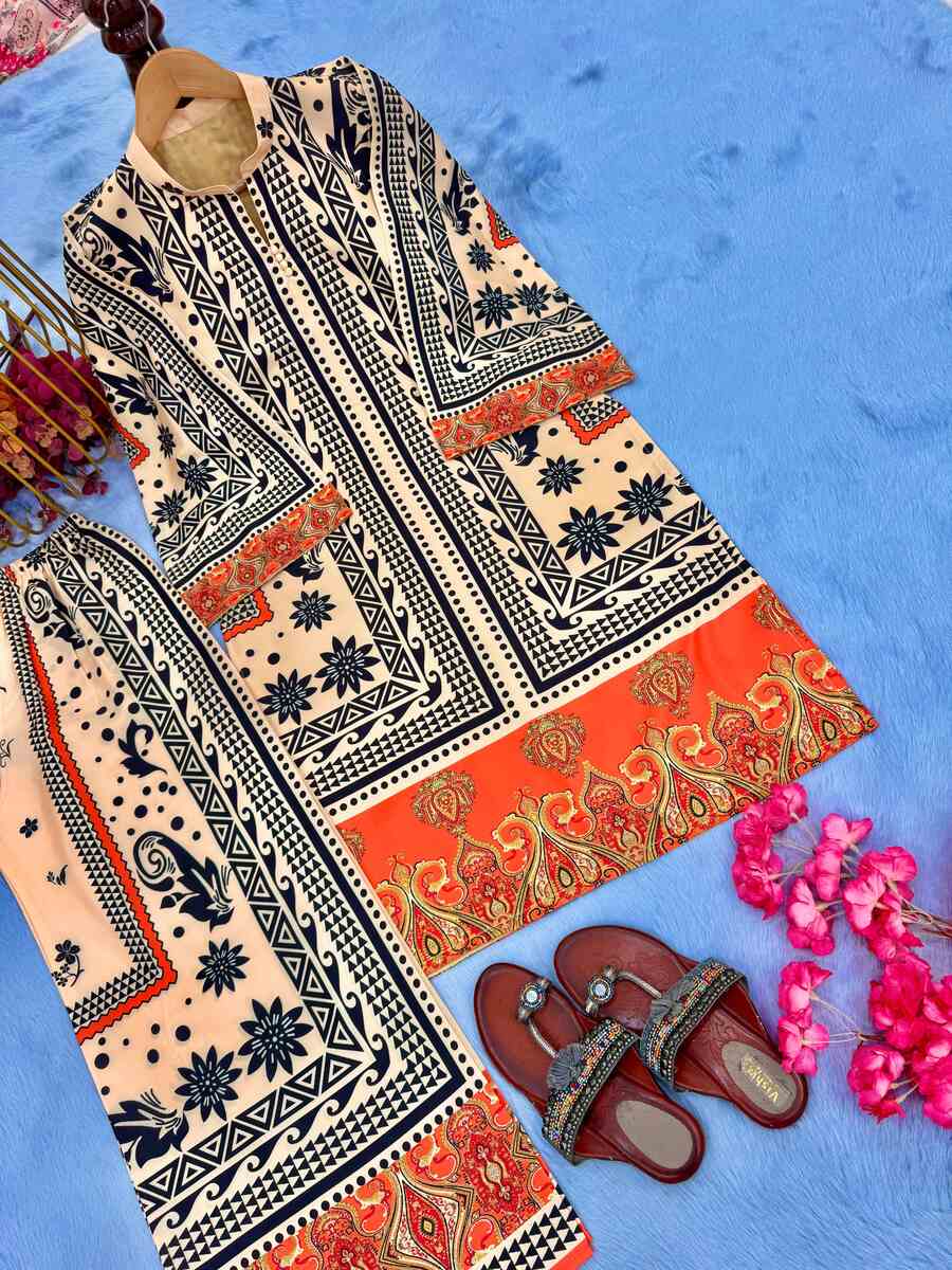 ATTRACTIVE CREPE DIGITAL PRINT WORK CO-ORD SET ORANGE