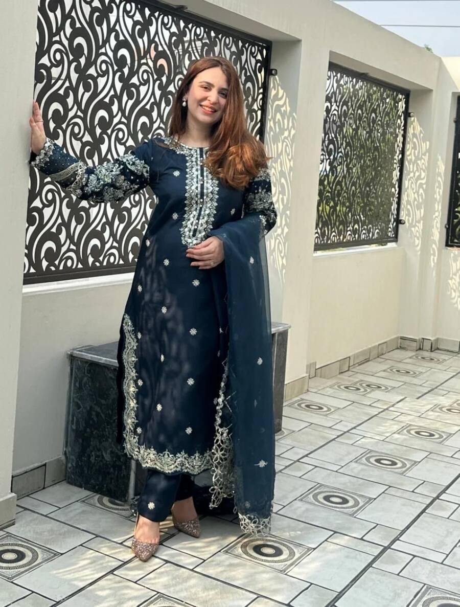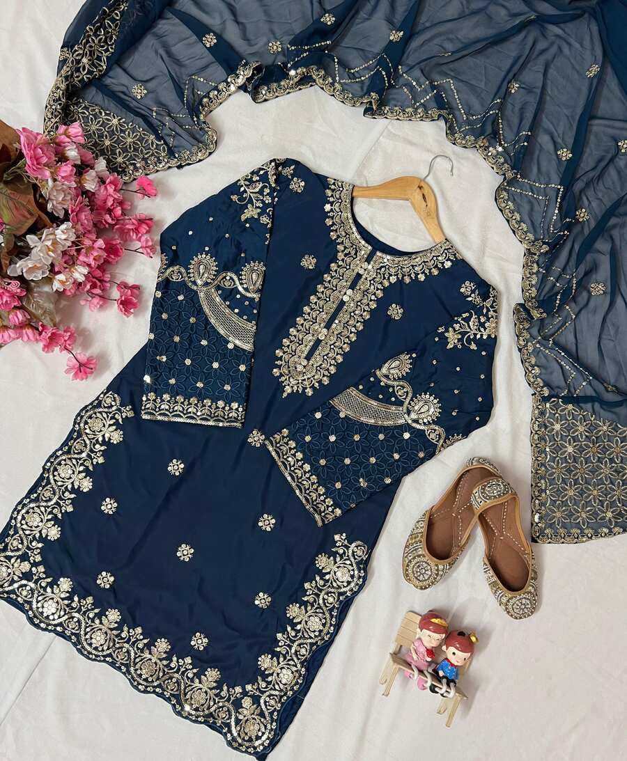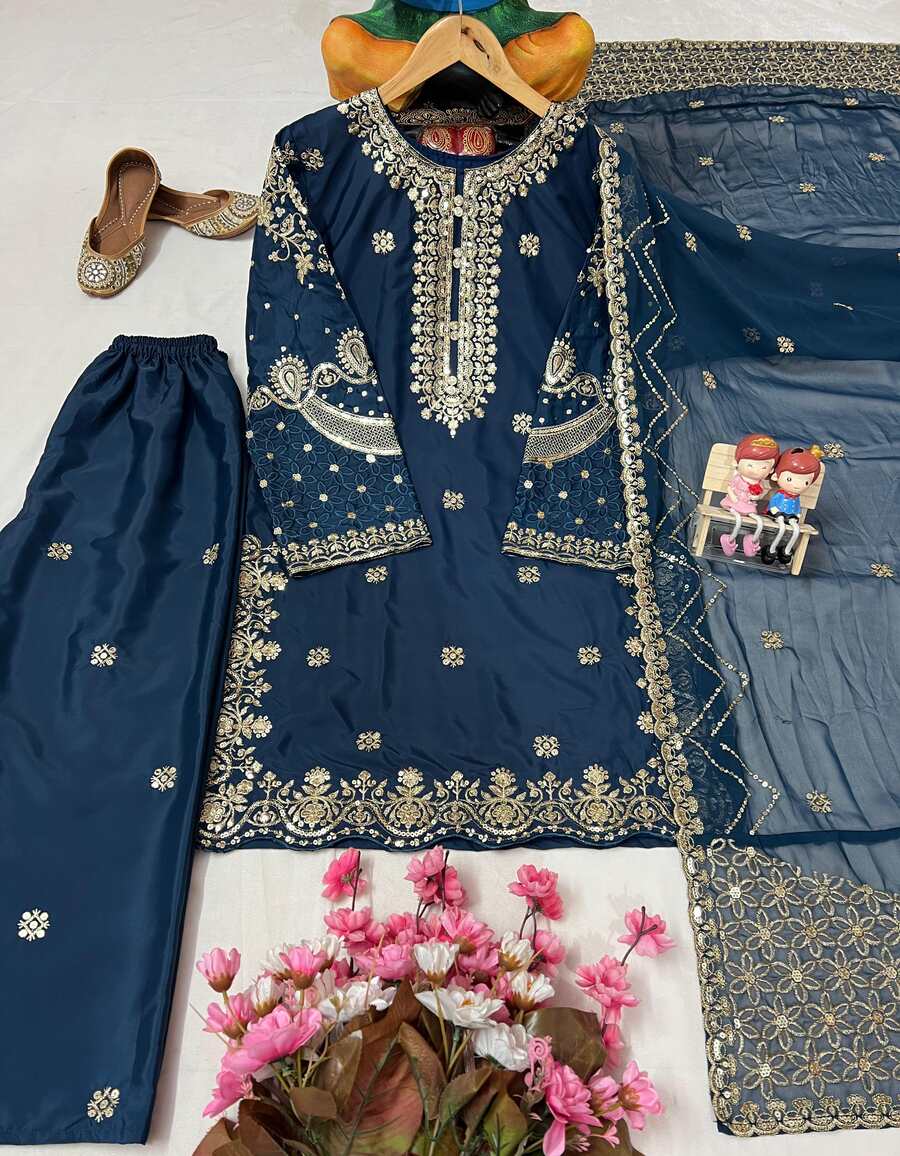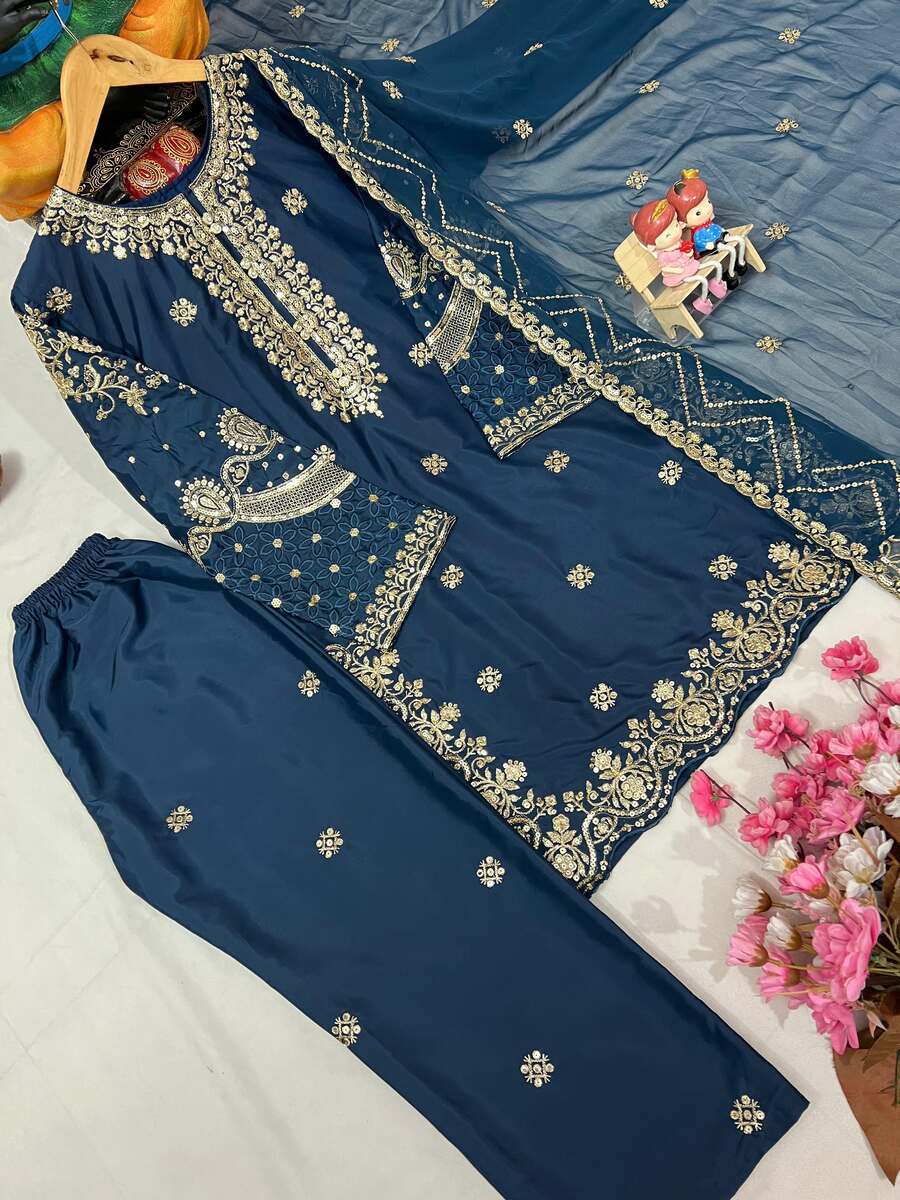 ATTRACTIVE CREPE SEQUENCE EMBROIDERY WORK TOP BOTTOM WITH DUPATTA TEAL