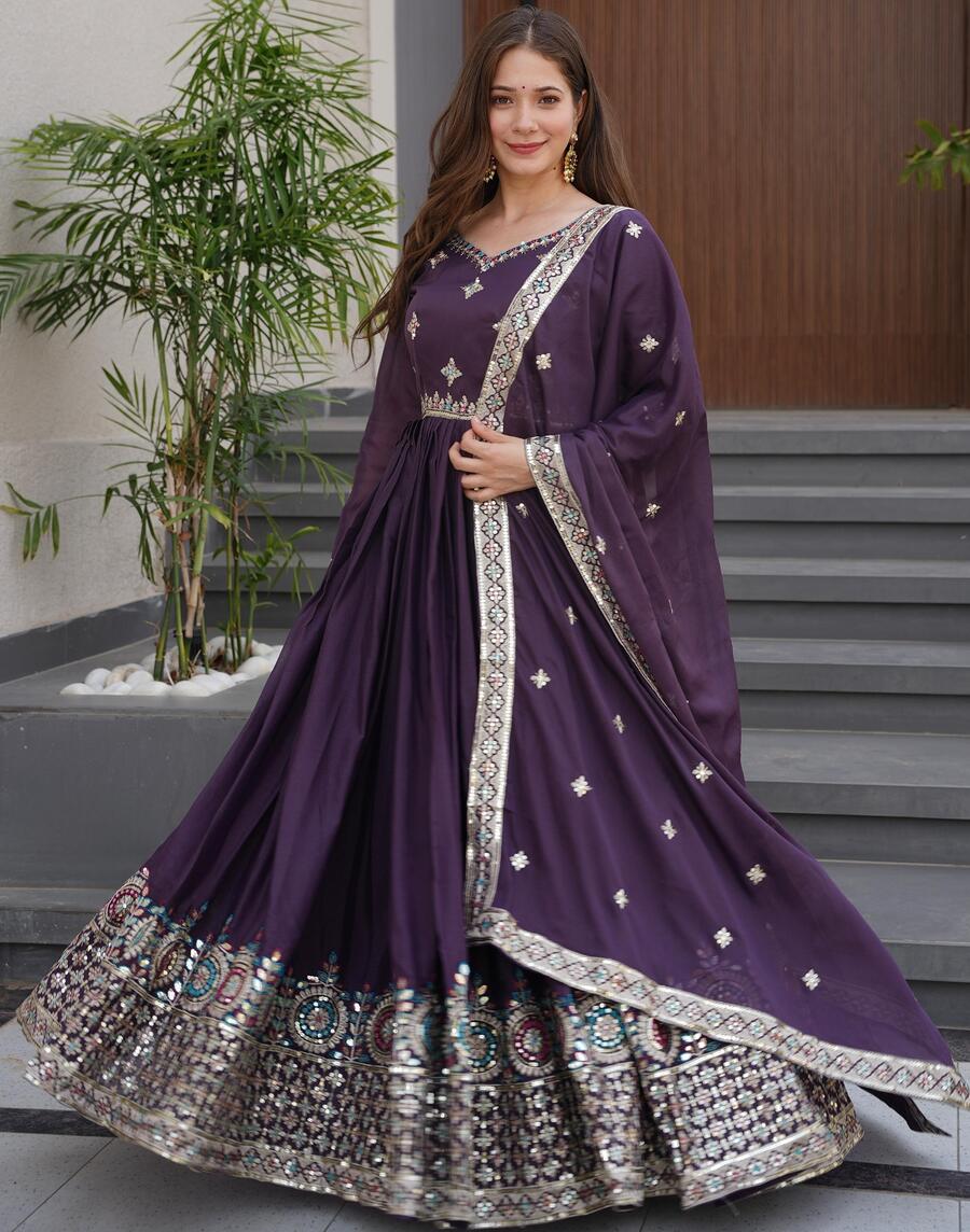 ATTRACTIVE DIAMOND SILK EMBROIDERY THREAD SEQUENCE WORK GOWN WITH DUPATTA LAVENDER