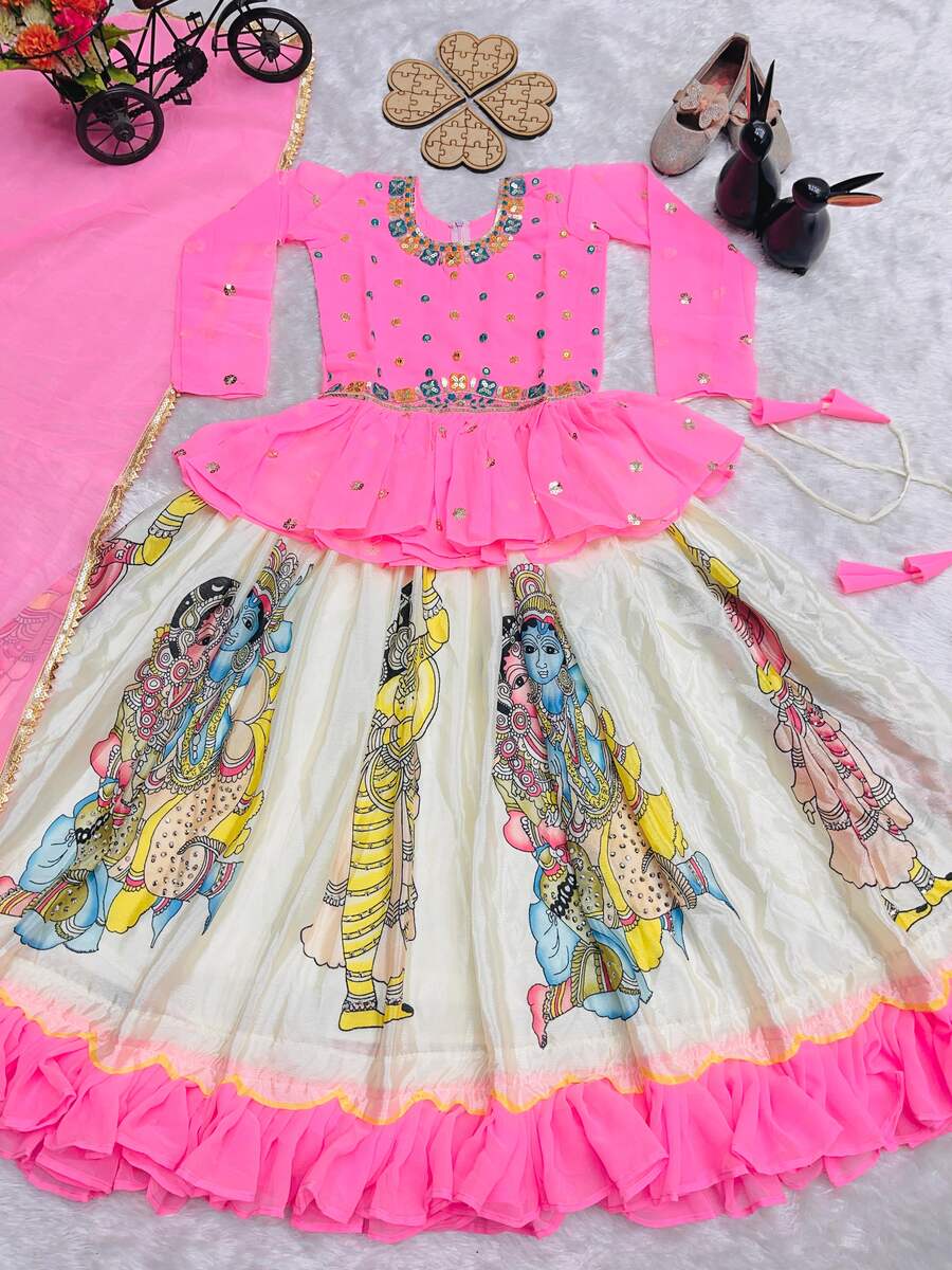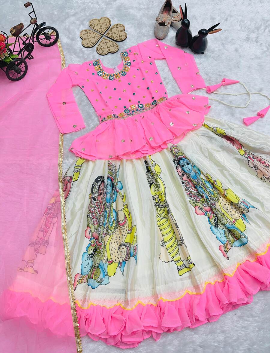 ATTRACTIVE GEORGETTE EMBROIDERY SEQUENCE WORK KIDS LEHENGA CHOLI WITH DUPATTA PINK