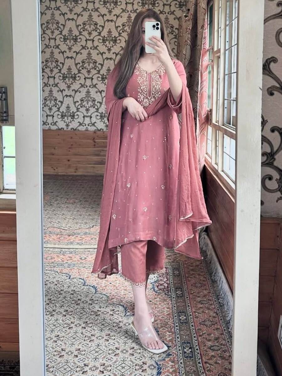 ATTRACTIVE GEORGETTE EMBROIDERY SEQUENCE WORK TOP BOTTOM WITH DUPATTA PINK
