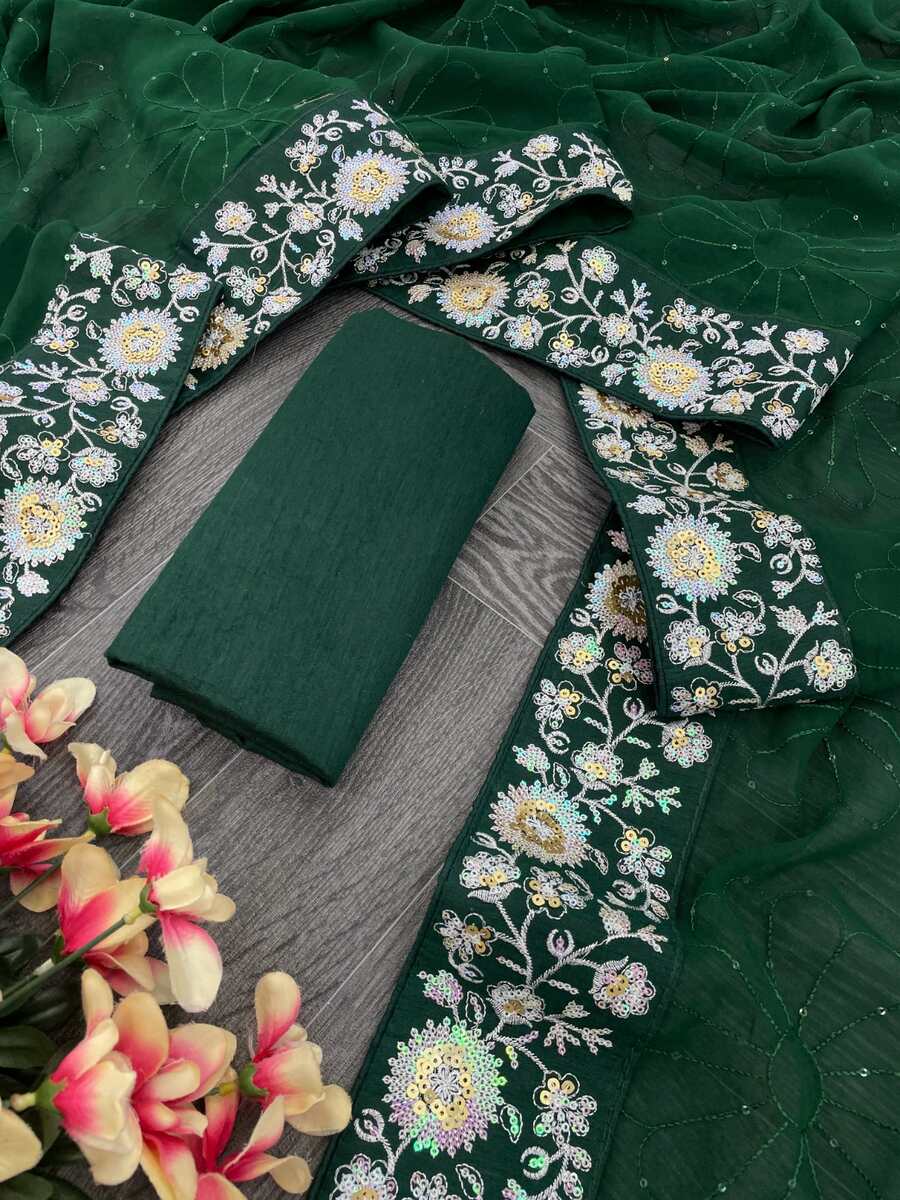 ATTRACTIVE GEORGETTE EMBROIDERY SEQUENCE WORK WITH SEQUENCE LACE SAREE WITH UNSTITCHED BLOUSE GREEN