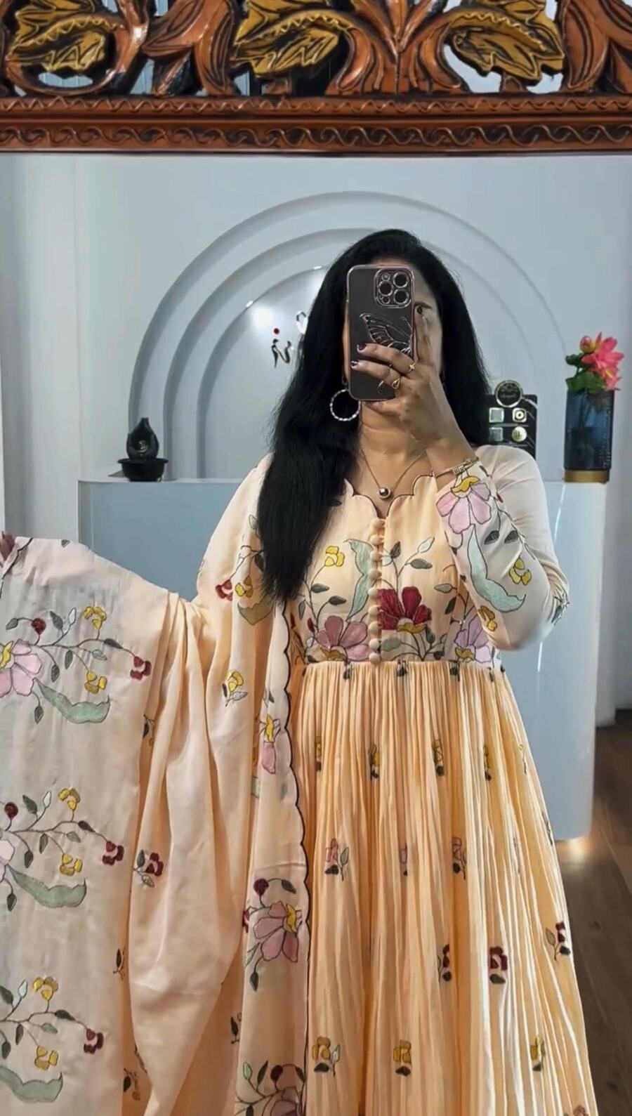ALIA CUT GOWN FABRIC :- PURE CHINON SILK & CRUSH WITH EMBROIDERY WORK WITH FANCY FULL SLEEVE