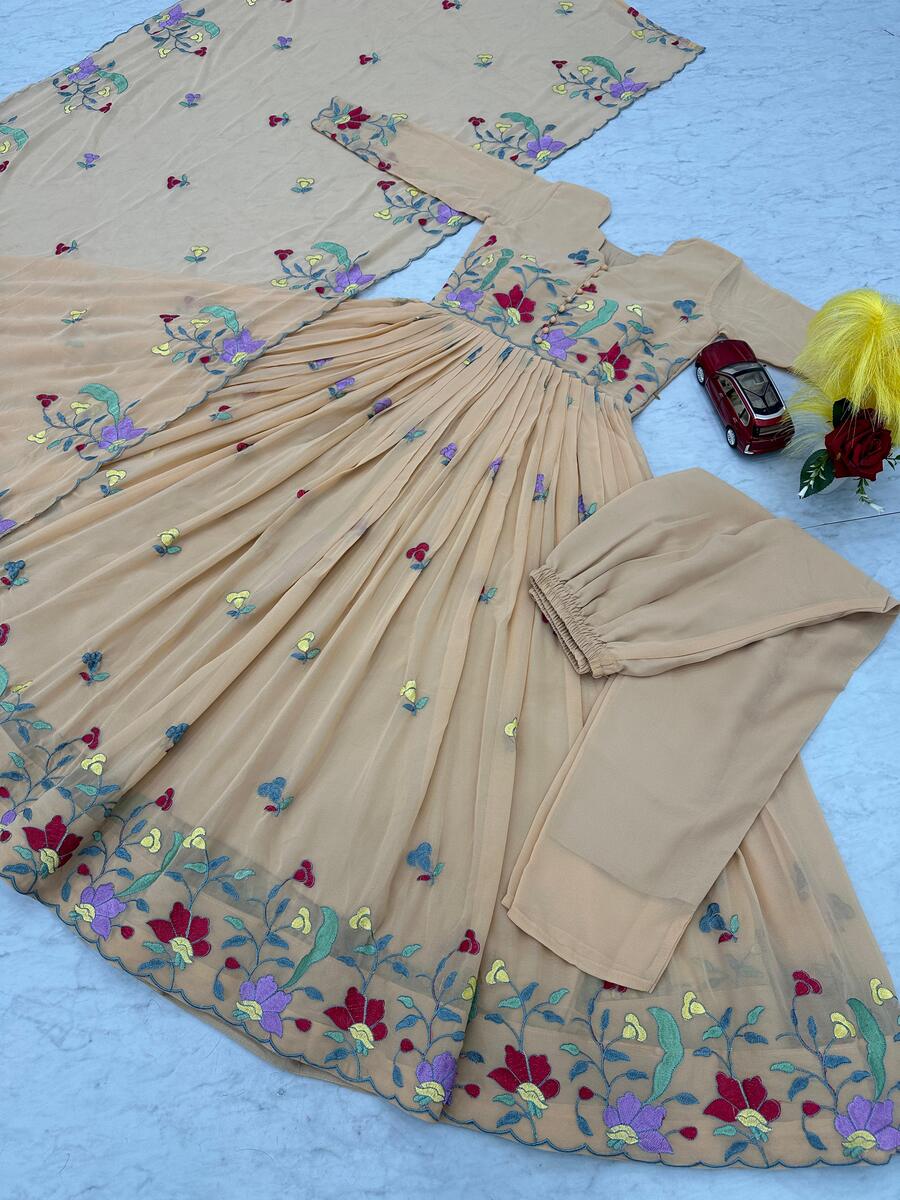 ATTRACTIVE GEORGETTE EMBROIDERY THREAD WORK GOWN BOTTOM WITH DUPATTA CREAM