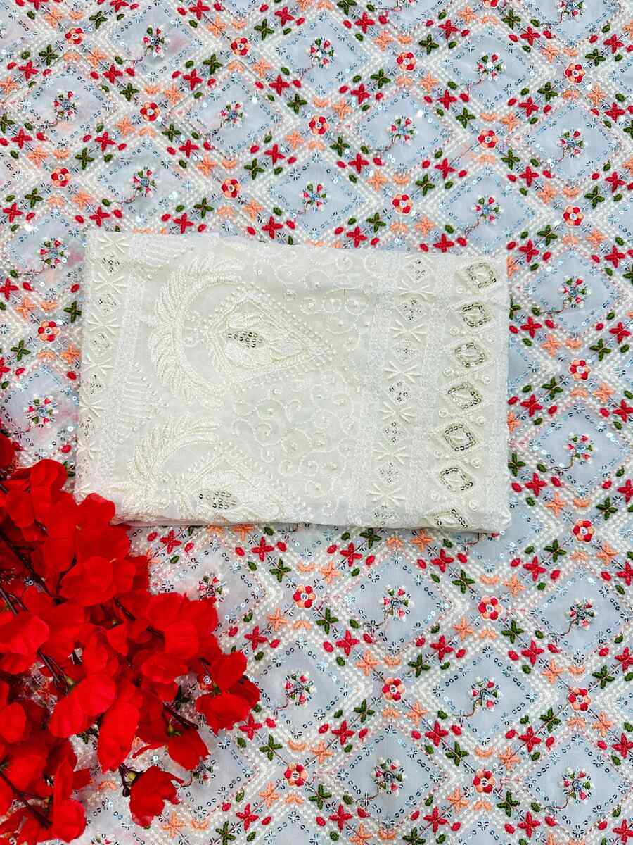 ATTRACTIVE GEORGETTE MULTI COLOUR EMBROIDERY SEQUENCE SAREE WITH UNSTITCHED BLOUSE MULTI