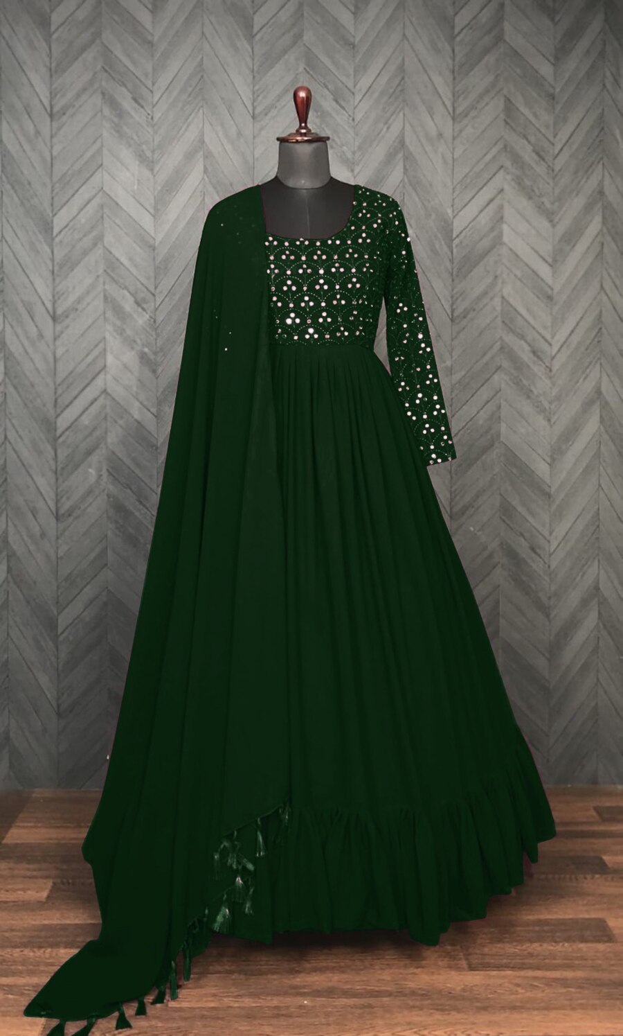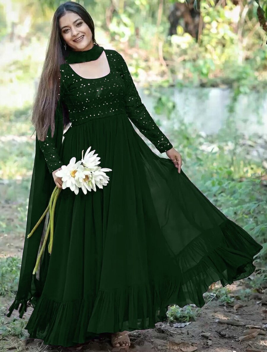 ATTRACTIVE GEORGETTE THREAD SEQUENCE ANARKALI GOWN WITH DUPATTA GREEN
