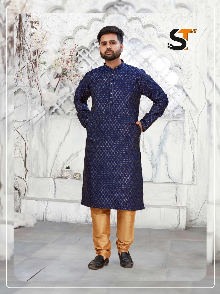 ATTRACTIVE JACQUARD MEN’S KURTA PAYJAMA BLUE