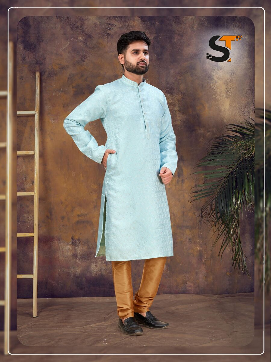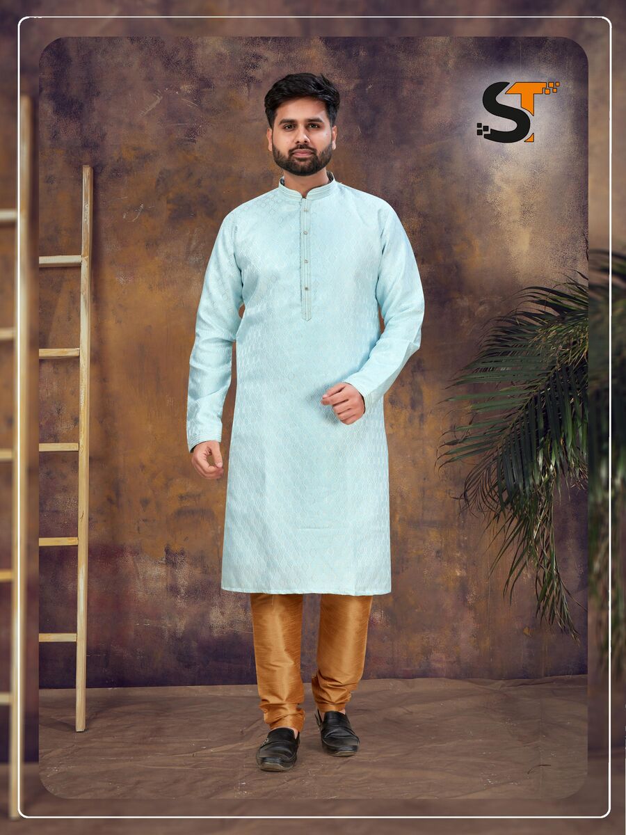 ATTRACTIVE JACQUARD MEN’S KURTA PAYJAMA SKY