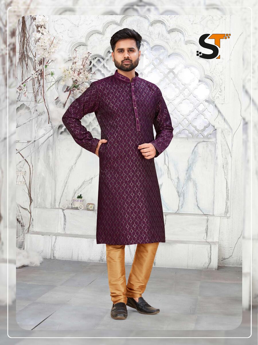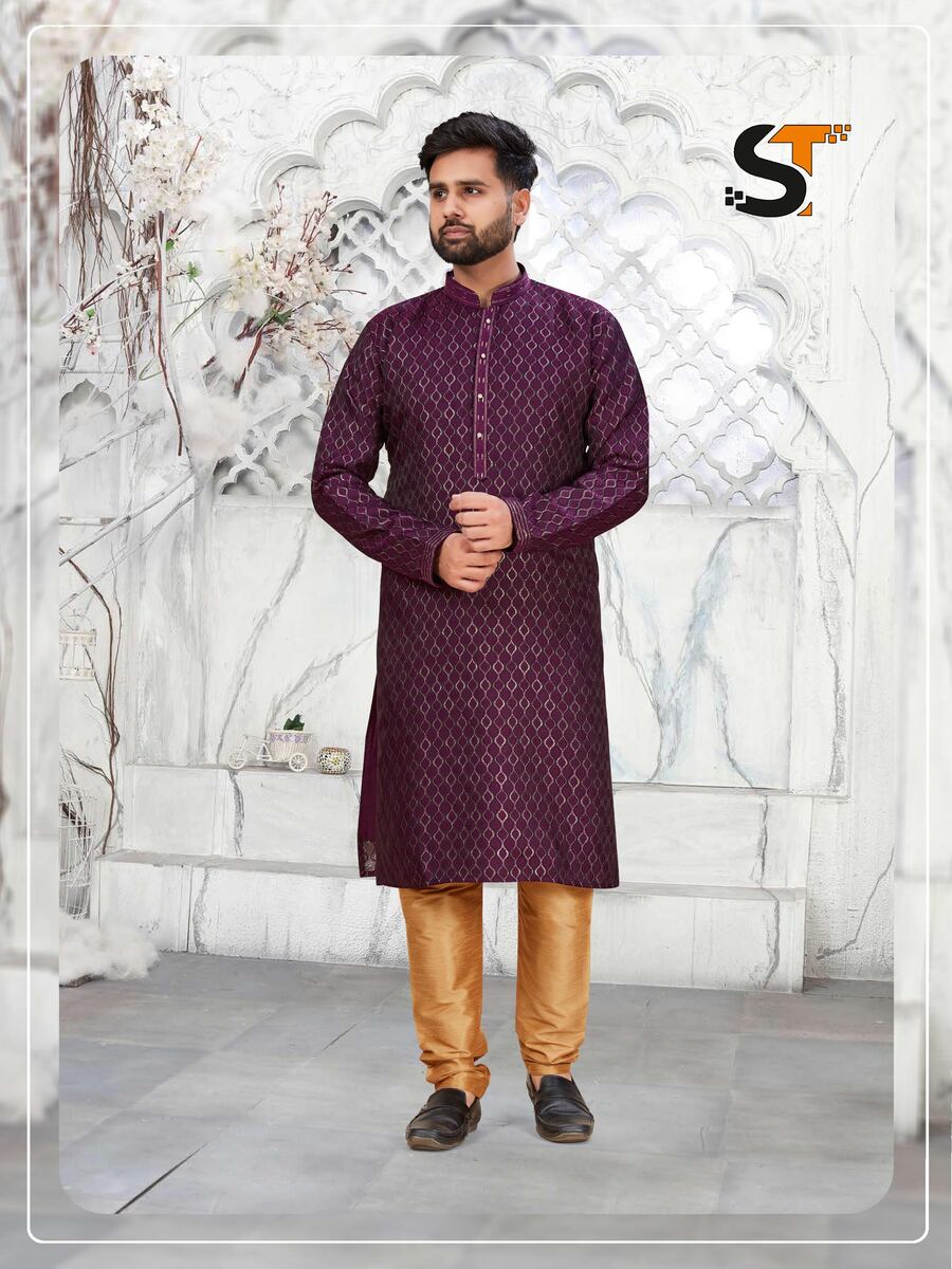 ATTRACTIVE JACQUARD MEN’S KURTA PAYJAMA WINE