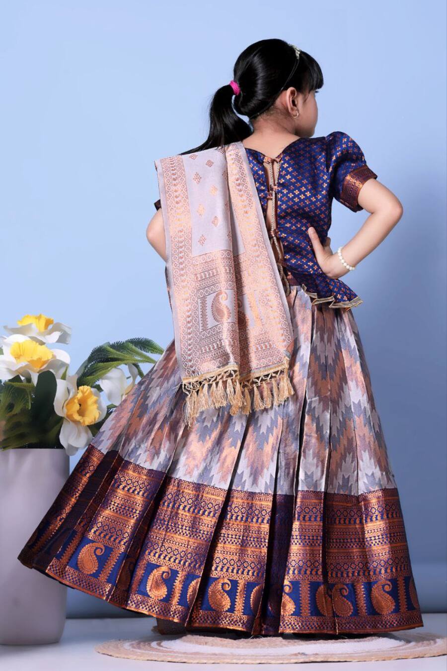 ATTRACTIVE JACQUARD WEAVING DESIGN AND LACE BORDER WITH ROUND MIRROR WORK LEHENGA CHOLI WITH DUPATTA BLUE