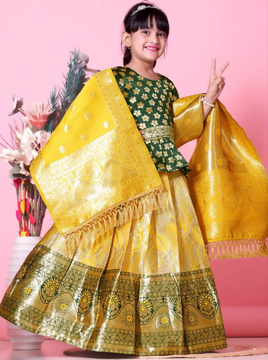 ATTRACTIVE JACQUARD WEAVING DESIGN WORK LEHENGA CHOLI WITH DUPATTA YELLOW