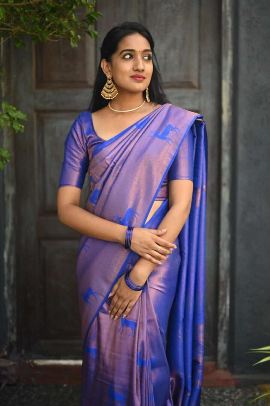 ATTRACTIVE LICHI SILK JACQUARD WORK SAREE WITH UNSTITCHED BLOUSE BLUE